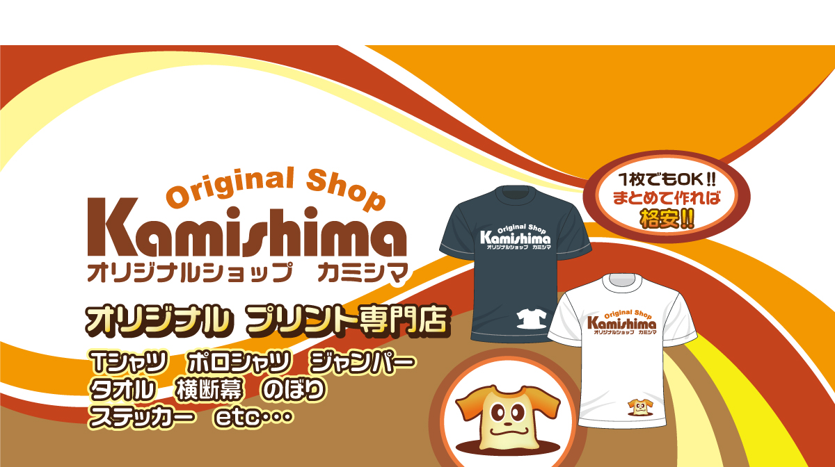 栃木県栃木市にて、オリジナルTシャツの製作・販売。他にもTシャツ.トレーナー.ジャンパー.ステッカー.横断幕.のぼり.パネル.プレート等の製作販売も致しております。